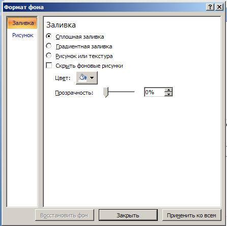 Параметры объекта «Слайд»