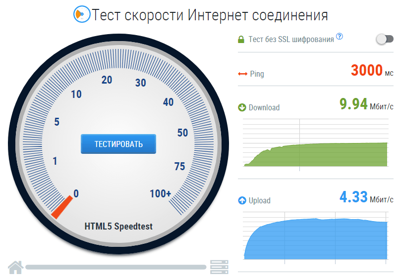 - Данный тест скорости разработан на HTML5 и умеет измерять каналы шириной более Гбит/с, что недоступно многим другим онлайн-сервисам
