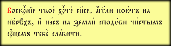 Данная гарнитура достаточно распространена в изданиях Синодальной типографии конца 19-начала 20 века и, надеюсь, наиболее известна сегодняшним певчим и чтецам. Этой гарнитурой набраны, например, современные патриархийные (издательства Московской Патриархии) репринты обеих Триодей, Часослова, Служебника, Типикона и многих других изданий.